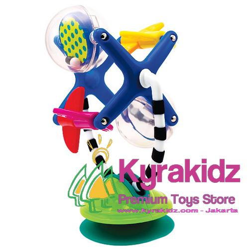 * 2 toys in one; suction base for use on highchair or table surface, removable rotating toy for carry along.